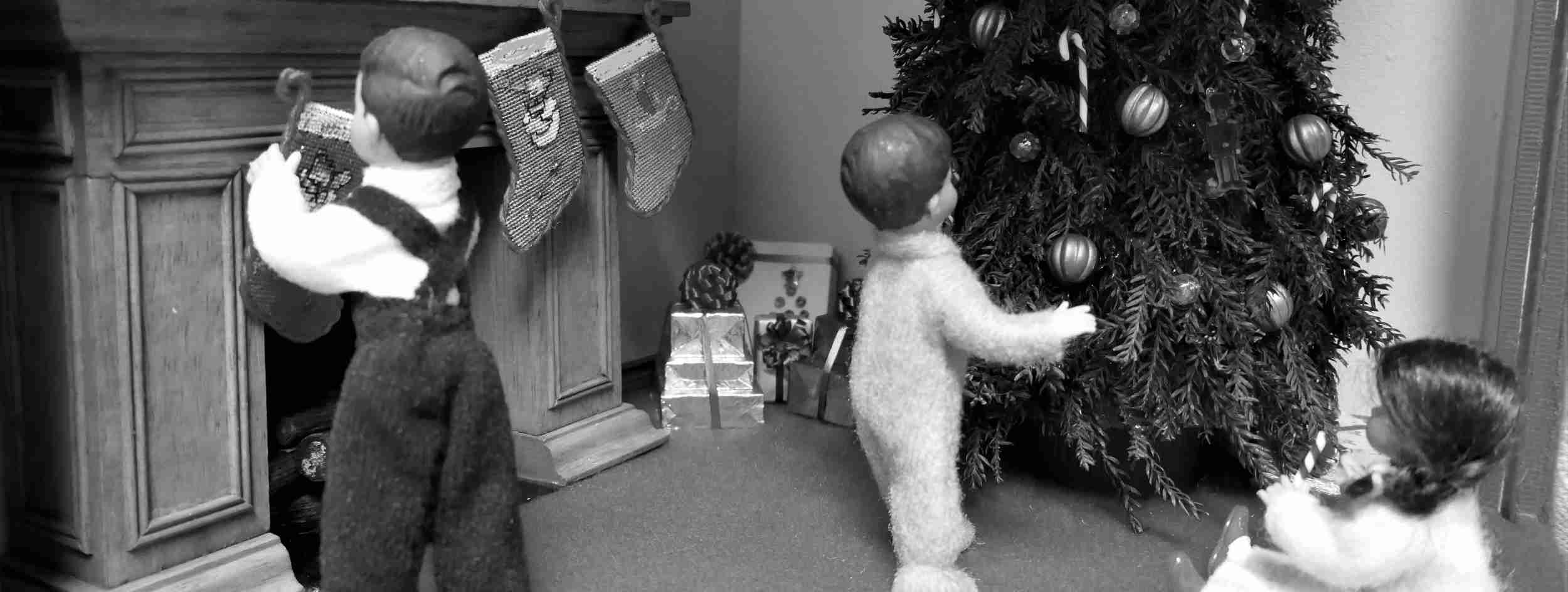 I used the same fleece on the floor, and added a fireplace. The tree branches are made of pieces of eucalyptus.